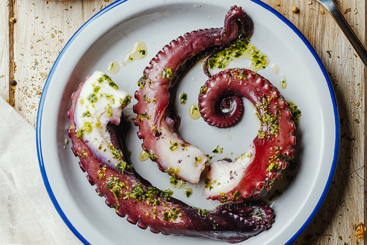Poulpe à l’ail et sauce romesco
